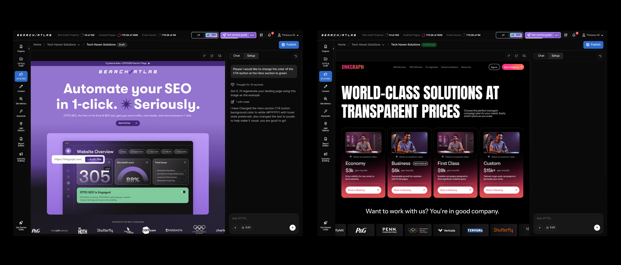 This project focused on rethinking how marketers create and manage PPC landing pages. The goal was to simplify what used to take hours connecting ad campaigns, generating multiple landers, and syncing them with live ads into a streamlined AI-powered experience that delivers results in minutes.